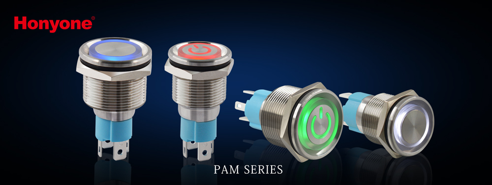 HONYONE最新推出大電流PAM系列(IP67防水帶燈)金屬按鈕開(kāi)關(guān)