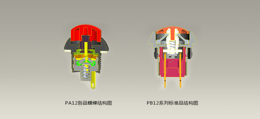 1.新產(chǎn)品工作原理采用蝴蝶結(jié)構(gòu),與普通按鈕單按結(jié)構(gòu)完全不同,可以保證產(chǎn)品的充分接觸,防止虛接,接觸壓力增加。行程結(jié)構(gòu)長,接觸時(shí)間短。
