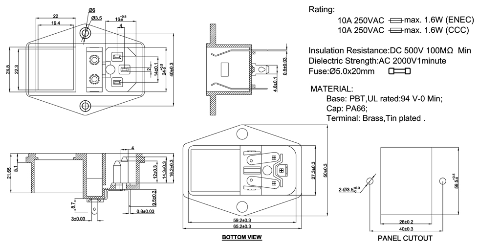 產(chǎn)品型號:S-03DF-21S 雙保險絲座