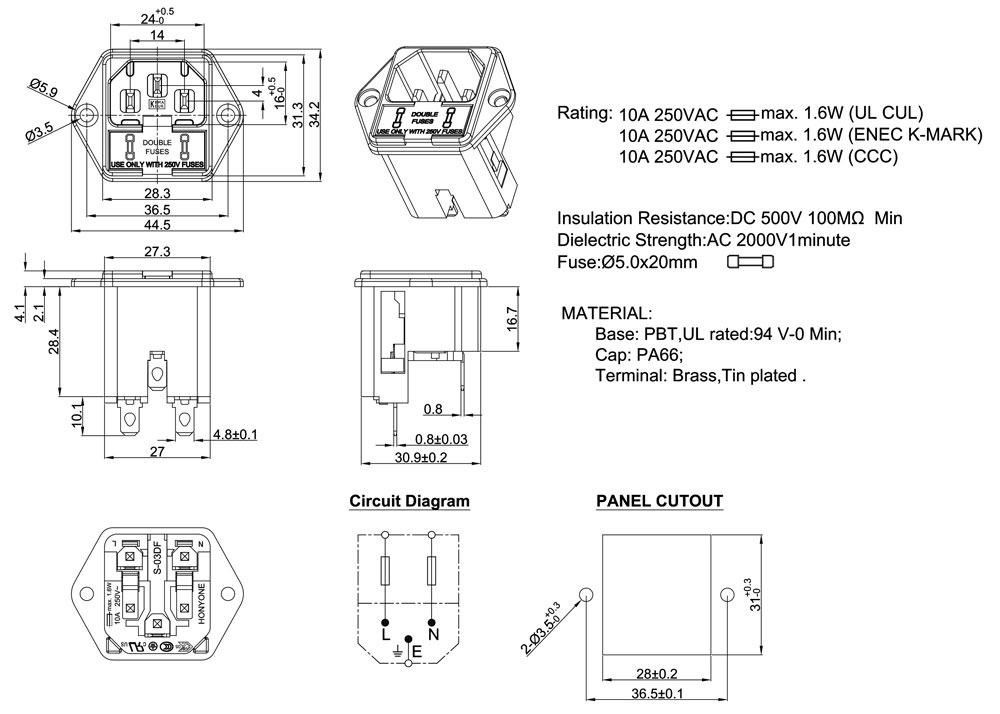 插座+雙保險(xiǎn)絲座 (5*20 fuse)