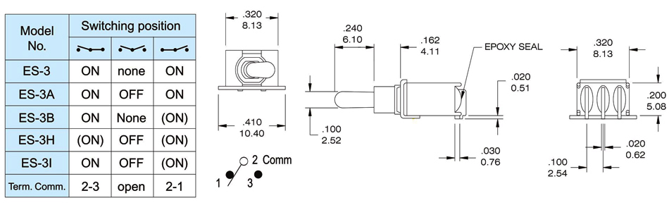Contact Rating: R- 0.4 VA max @ 20 V AC or DC