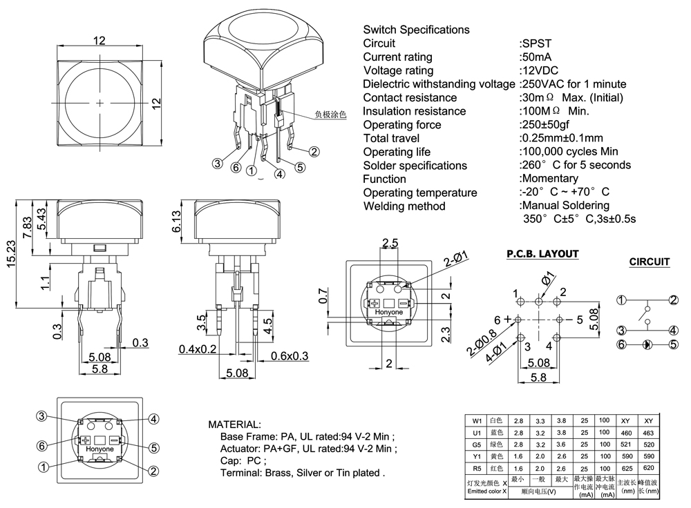 Solder specifications:260°C for 5 seconds