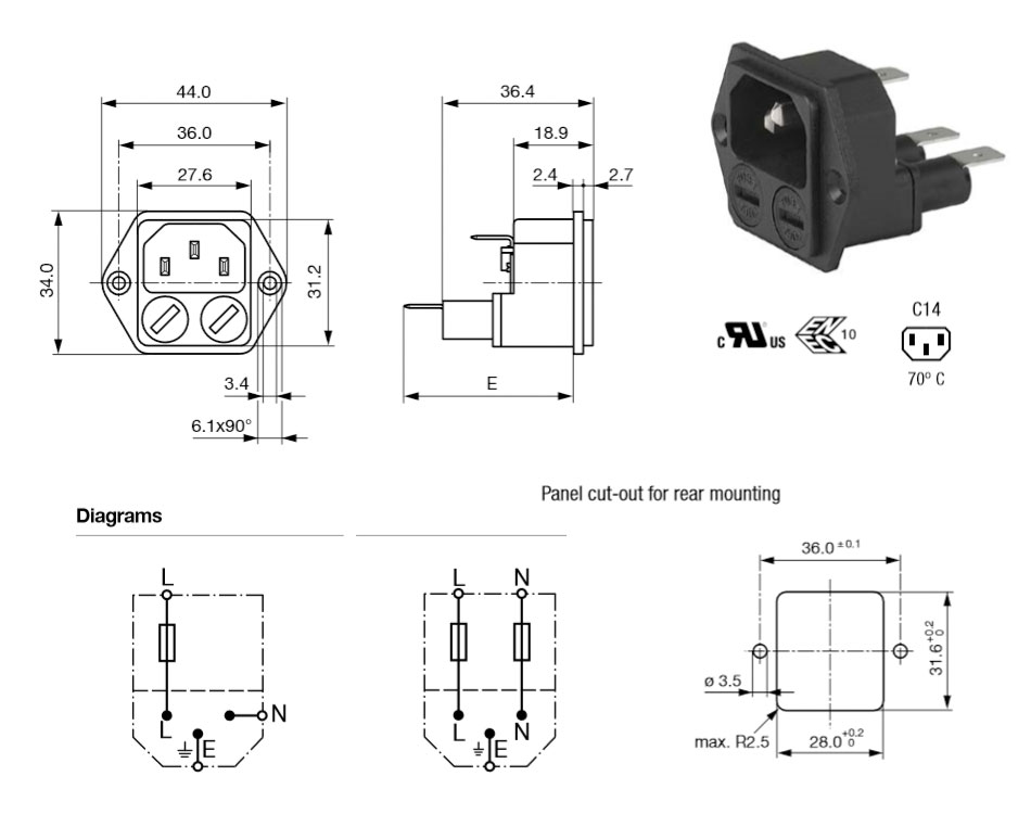 IEC帶保險絲電源插座 C14