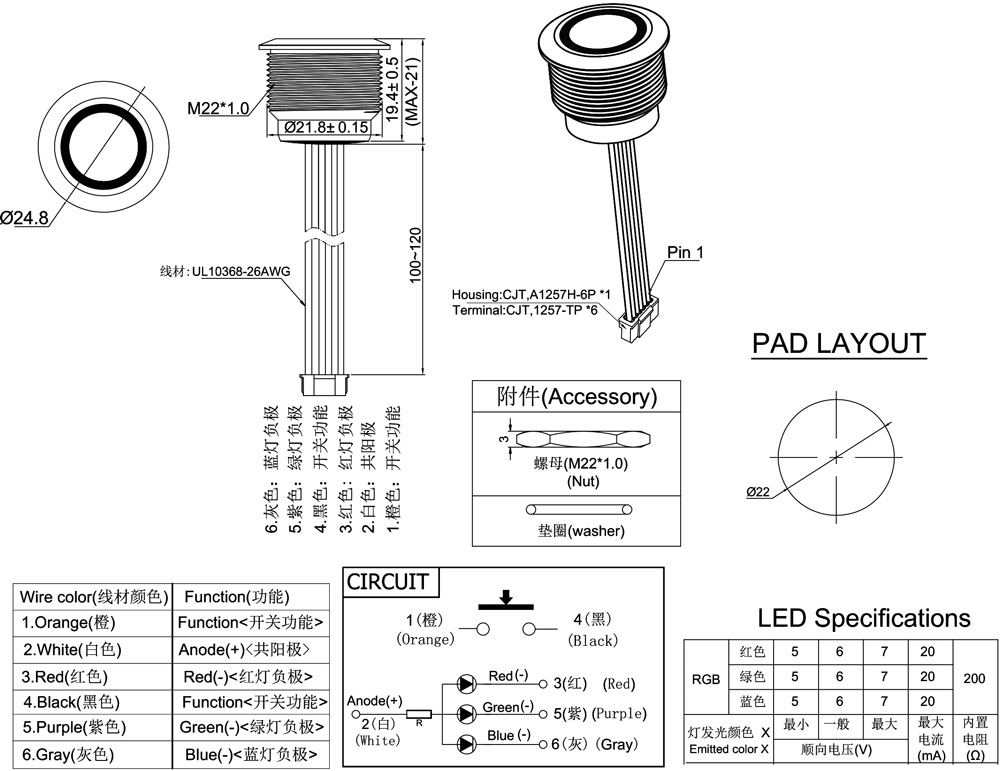 產(chǎn)品型號:PTM22-11M-F-RRGB-S0-H7-S
