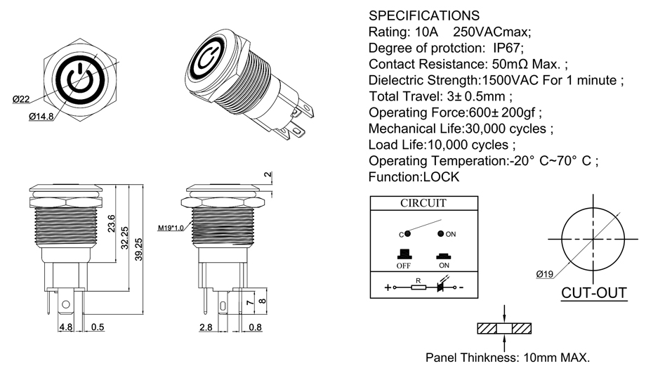 Mechanical Life:30,000 cycles ;