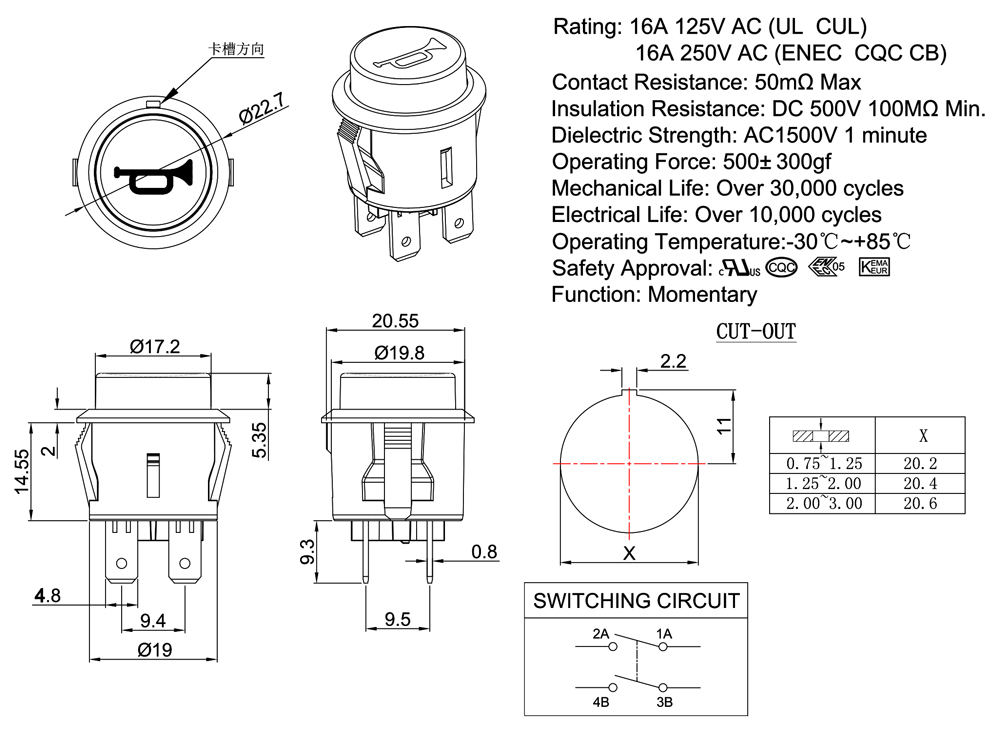 lnsulation Resistance: DC 500V 10OMΩ Min.