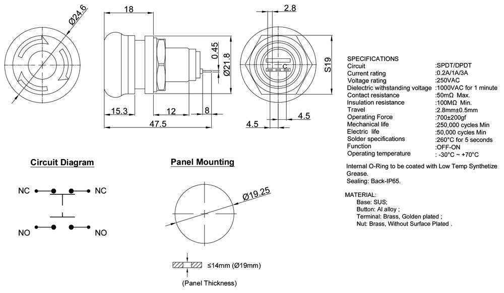Dielectric withstanding voltage : 1000VAC for 1 minute