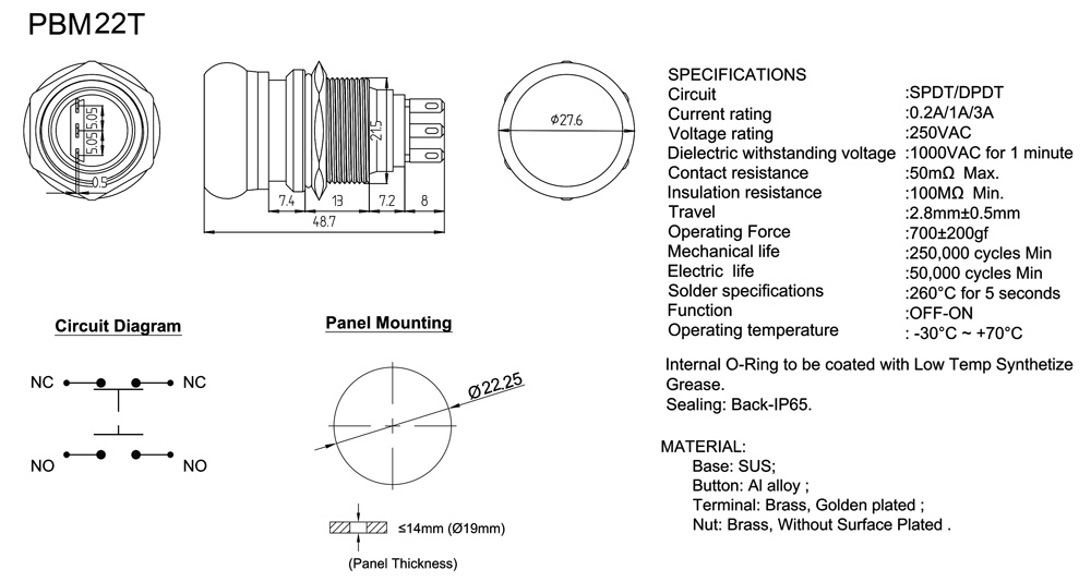 Dielectric withstanding voltage :1000VAC for 1 minute
