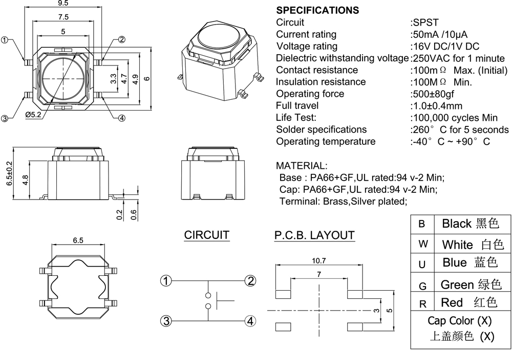 Operating Force:150±80gf
