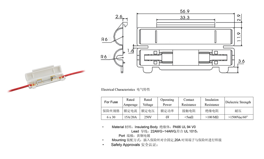 帶線(xiàn)保險(xiǎn)絲座(5*20/6*30 fuse)