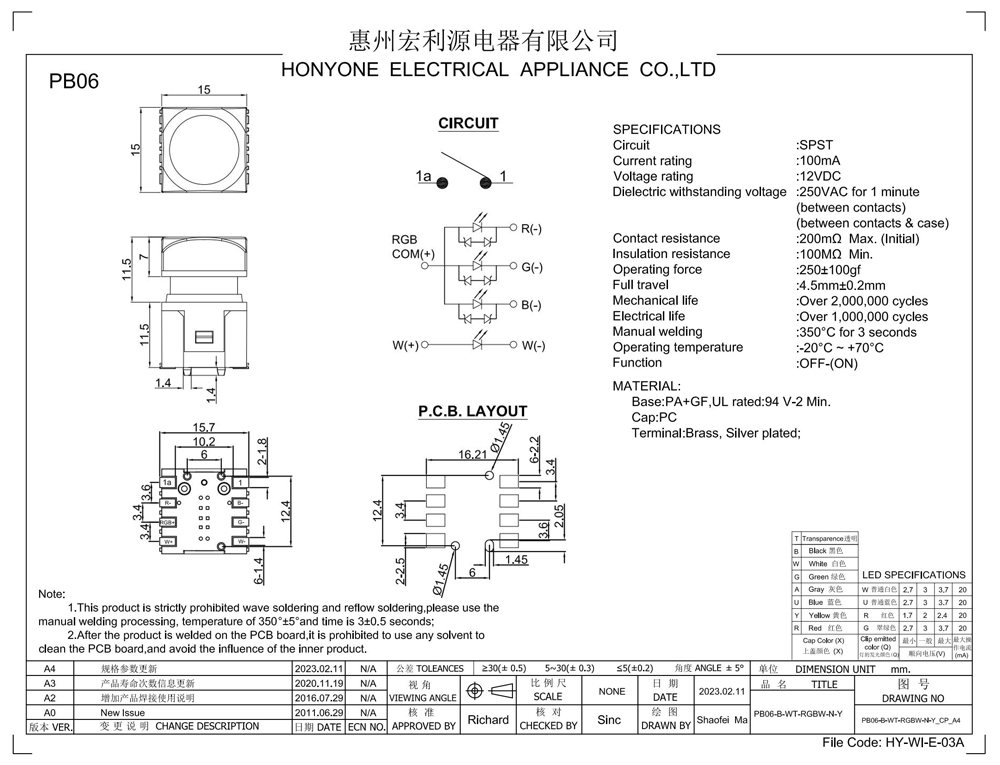 產(chǎn)品型號(hào):PB06-B-WT-RGB-N-Y
