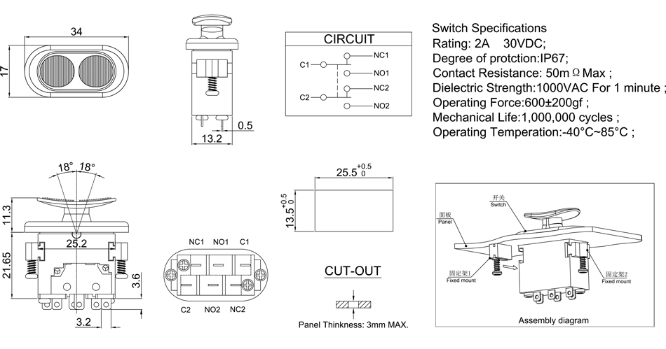 True ON-ON-ON triple-throw switch options 真正的實(shí)現(xiàn)ON-ON-ON三檔開(kāi)關(guān)功能 Switch contacts sealed to IP68S. With the optional開(kāi)關(guān)防水達(dá)IP68S級(jí)別。 Tested up to 1 million cycles 開(kāi)關(guān)壽命達(dá)100萬(wàn)次 Maintained or momentary action, single or double pole Logic level only 開(kāi)關(guān)可以做到單極與雙極邏輯控制 Standard and large rocker style sizes 開(kāi)關(guān)柄可以定制 Mining vehicle 應(yīng)用于礦用車(chē)輛 Large agricultural machinery大型農(nóng)業(yè)機(jī)械 Aerial work vehicle 高空作業(yè)車(chē)輛