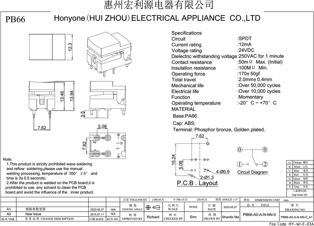 Operating Force :170±50gf