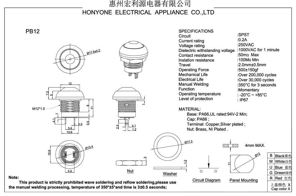 Dieletric withstanding voltage:1000VAC for 1 minute