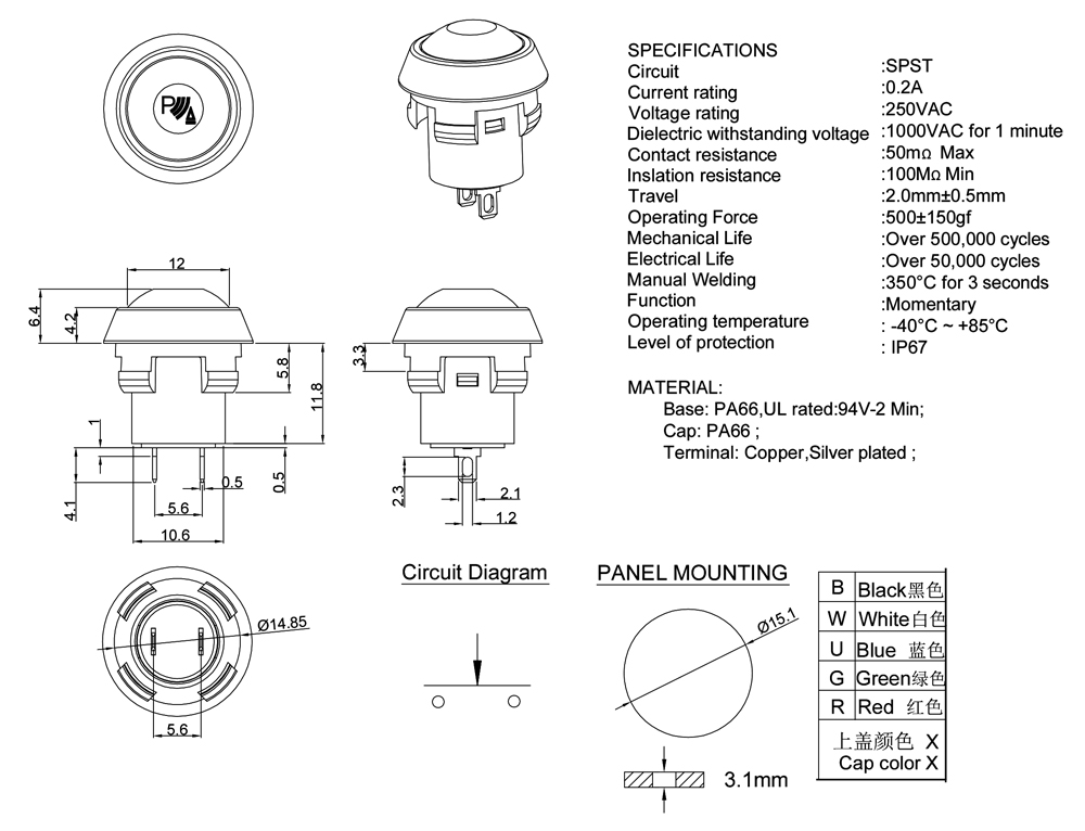 Dieletric withstanding voltage:1000VAC for 1 minute