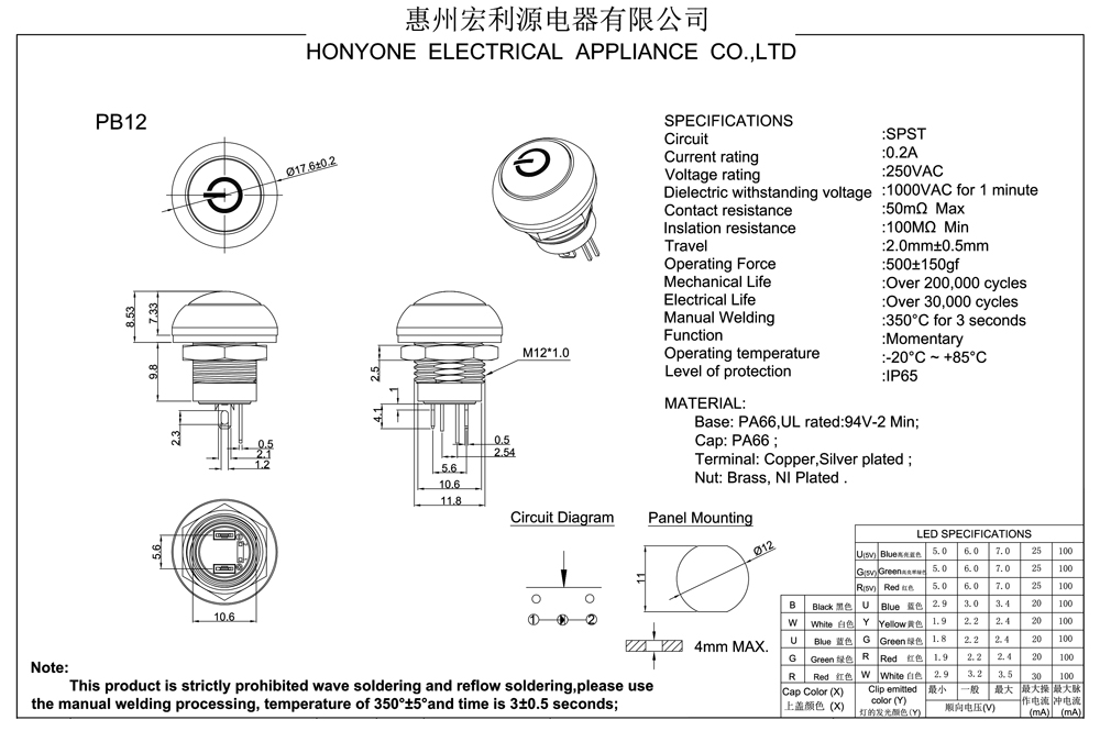Dieletric withstanding voltage:1000VAC for 1 minute