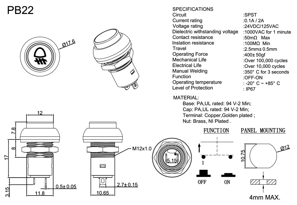 Lock Travel :1.5mm±0.5mm