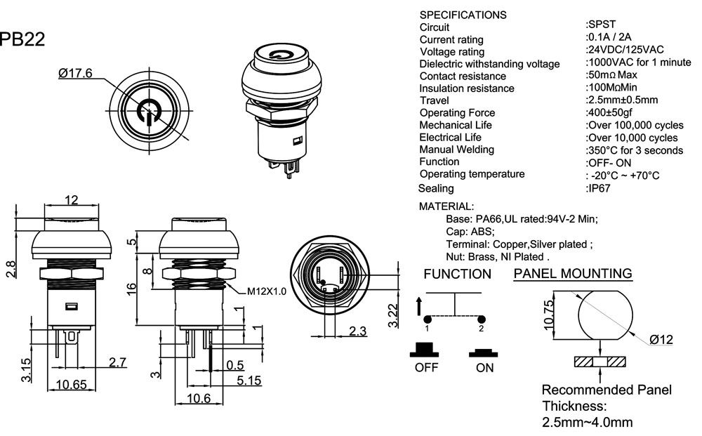 產(chǎn)品型號(hào):PB22-A-2B-G-1