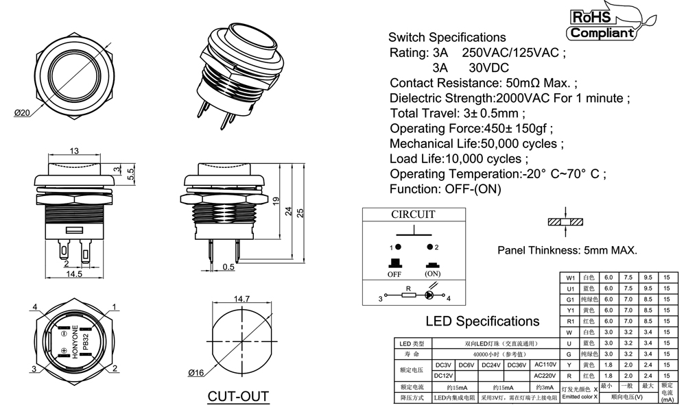 HONYONE新款PAM 20A大電流雙回路防水金屬開關(guān),為...