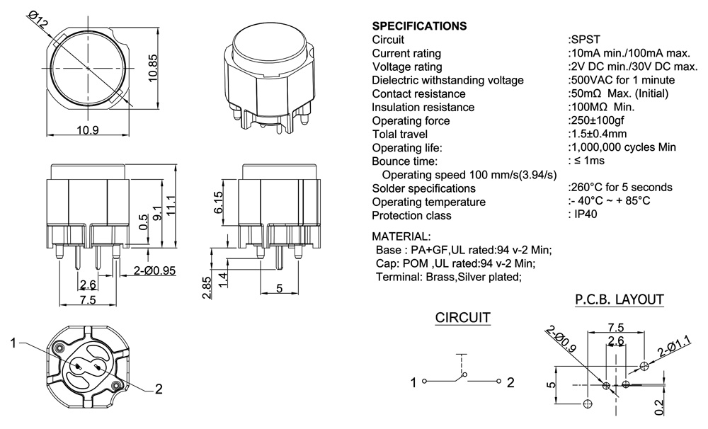DIELECTRIC STRENGTH (50 Hz, 1 min): ≥ 500 V