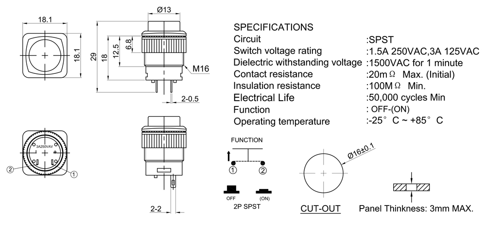 Switch voltage rating             :1.5A 250VAC,3A125VAC