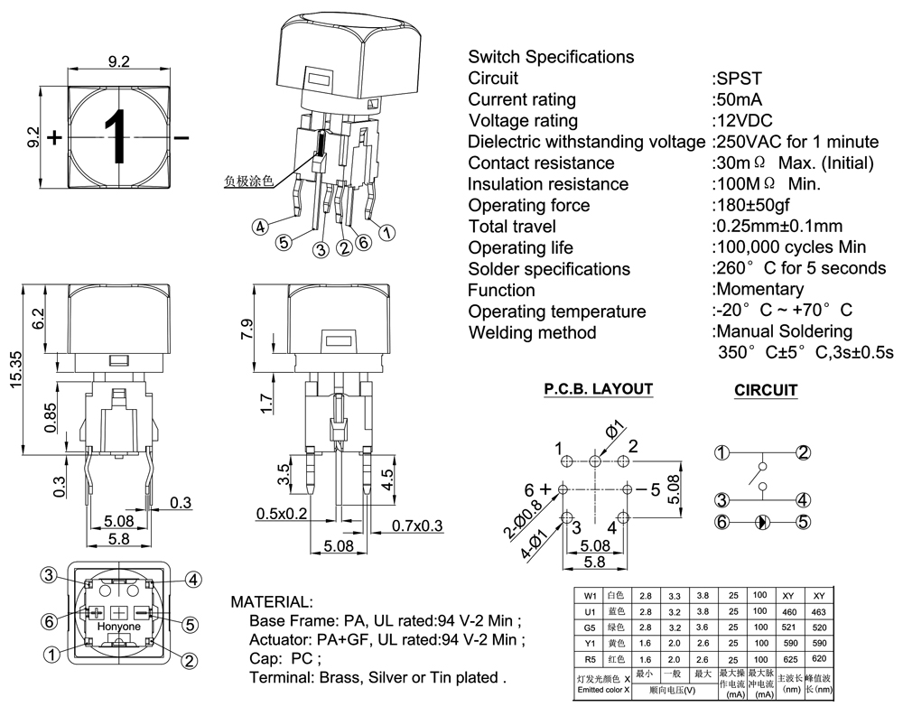Operating Force :180±50gf or 250±50gf