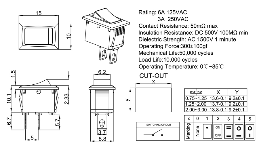 Rating:6A 125VAC 3A 250VAC