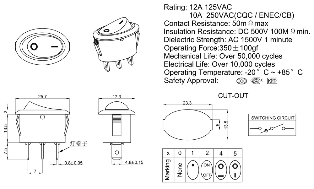 10A 250VAC(CQC / ENEC/CB)