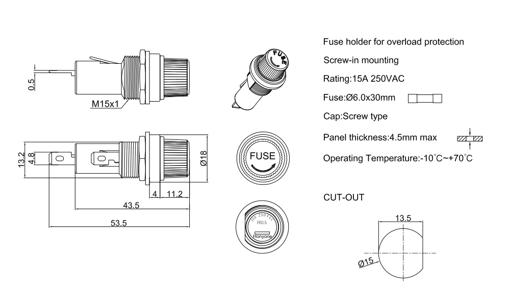 產(chǎn)品型號:FH15-13 6*30 保險(xiǎn)絲