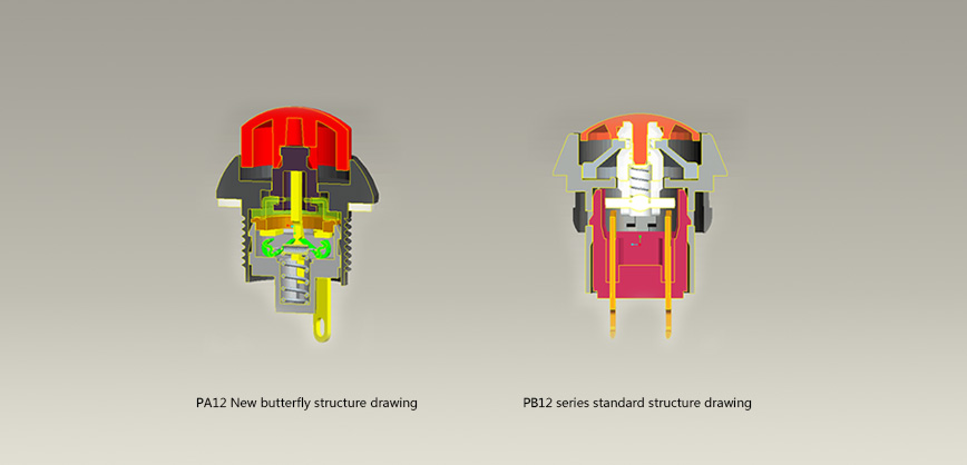 1. The working principle of the new product is butterfly structure, which is completely different from the ordinary button single press structure. It can ensure full contact of the product, prevent false connection and increase of contact pressure. Long stroke structure, short contact time.