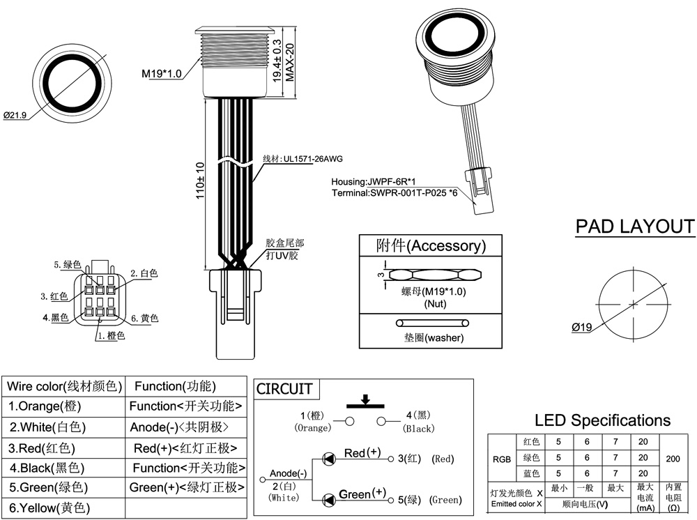 PRODUCT MODEL:PTM19-11M-F-RRG-S0 6PIN插頭