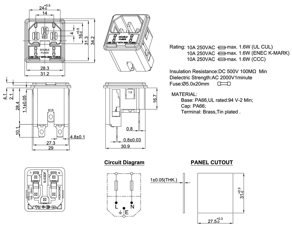 PRODUCT MODEL:S-03DF-12(2) DOUBLE FUSE