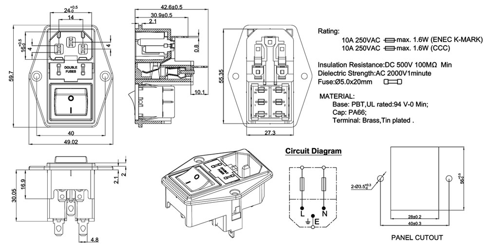 PRODUCT MODEL:S-03DF-21S 雙保險(xiǎn)絲座