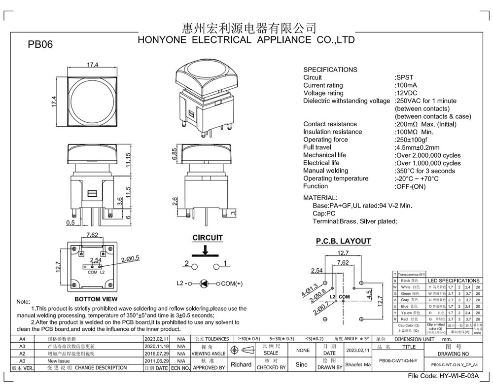 Mechanical life :over 2,000,oo0 cycles