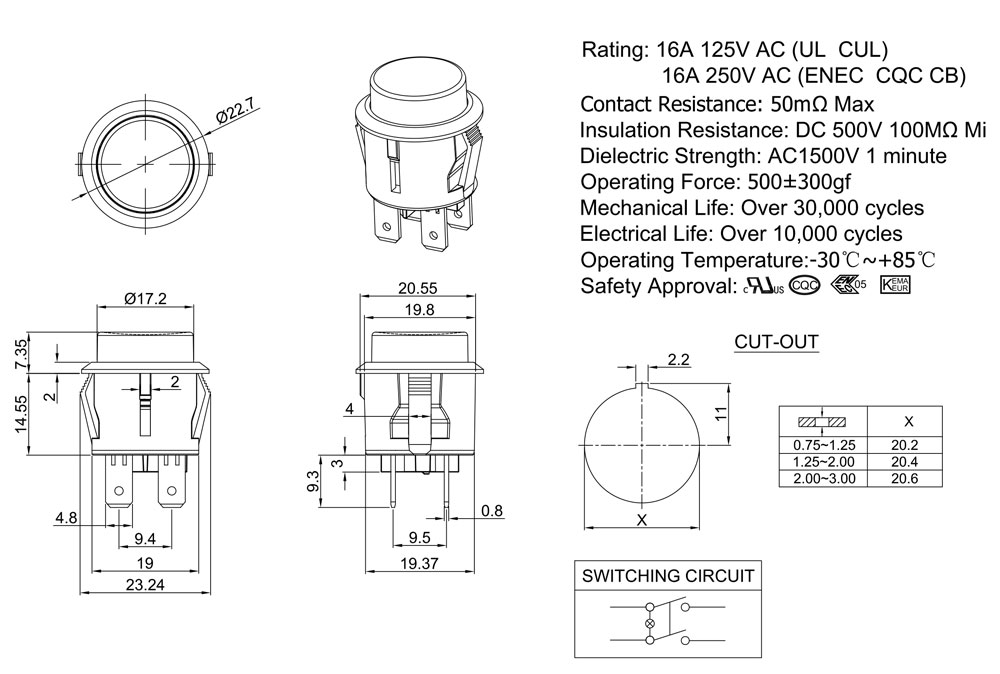 lnsulation Resistance: DC 500V 10OMΩ Min.