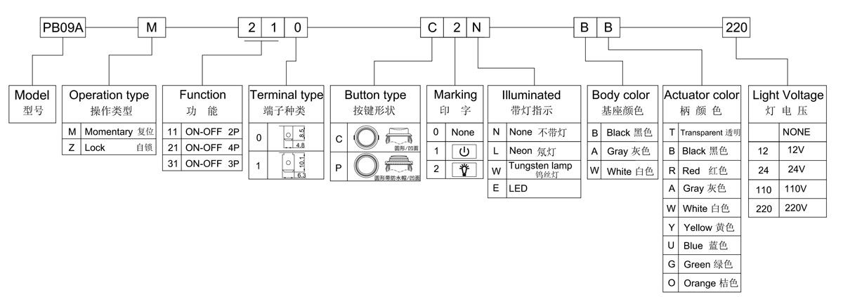 PRODUCT MODEL:PB09A-Z-210-P0L-BG-220