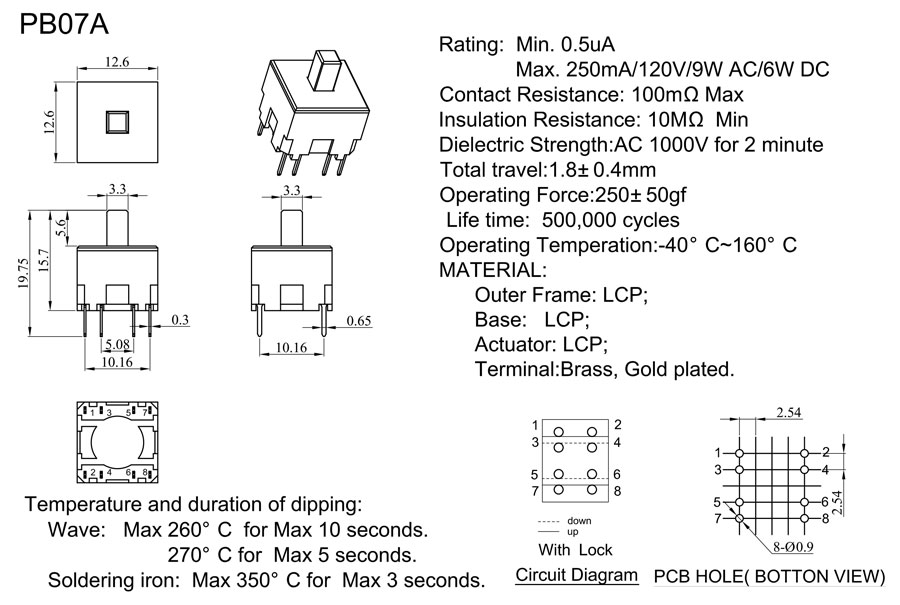 Dielectric withstanding voltage:1000VAC for 2 minute