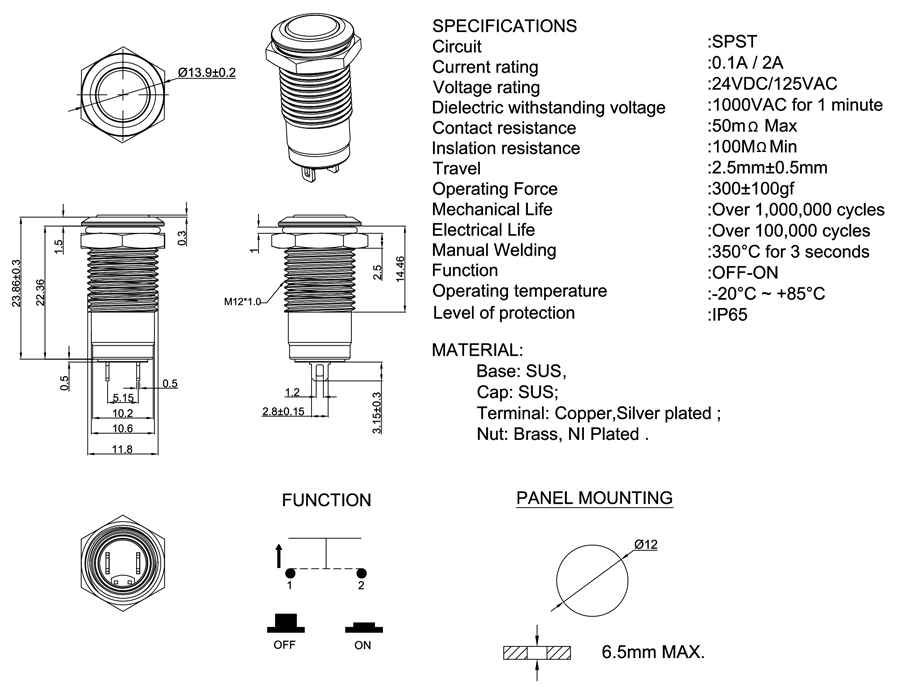 Full Travel :2.5mm±0.5mm Lock Travel :1.5mm±0.5mm