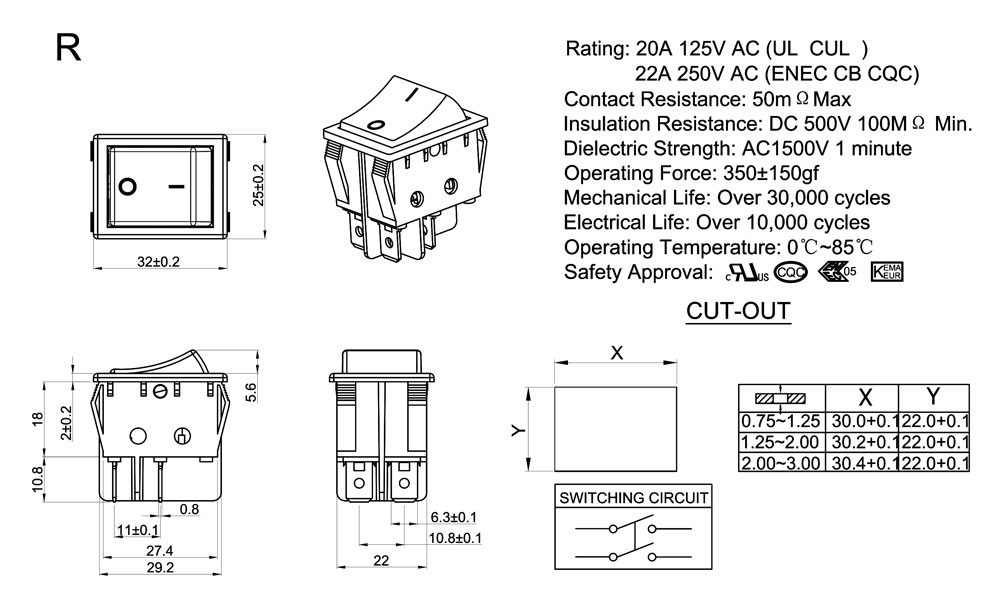Rating:20A 125V AC (UL CUL)